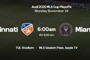迈阿密国际将在美职联1/4决赛迎战辛辛那提FC,根据俱乐部官网显示,比赛时间在11月24日周一早晨6点进行。