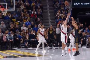 NBA生涯首个三分!杨瀚森迎着哈滕三分轰进!